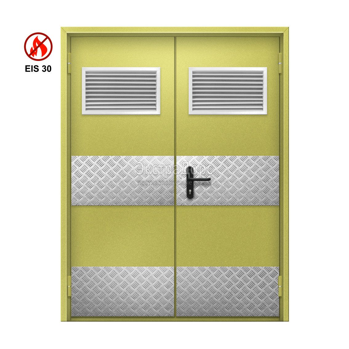 Двухстворчатая огнеупорная дверь EI 30 ДГ-02-EI30 ДП83 двупольная глухая с решеткой в Электростали