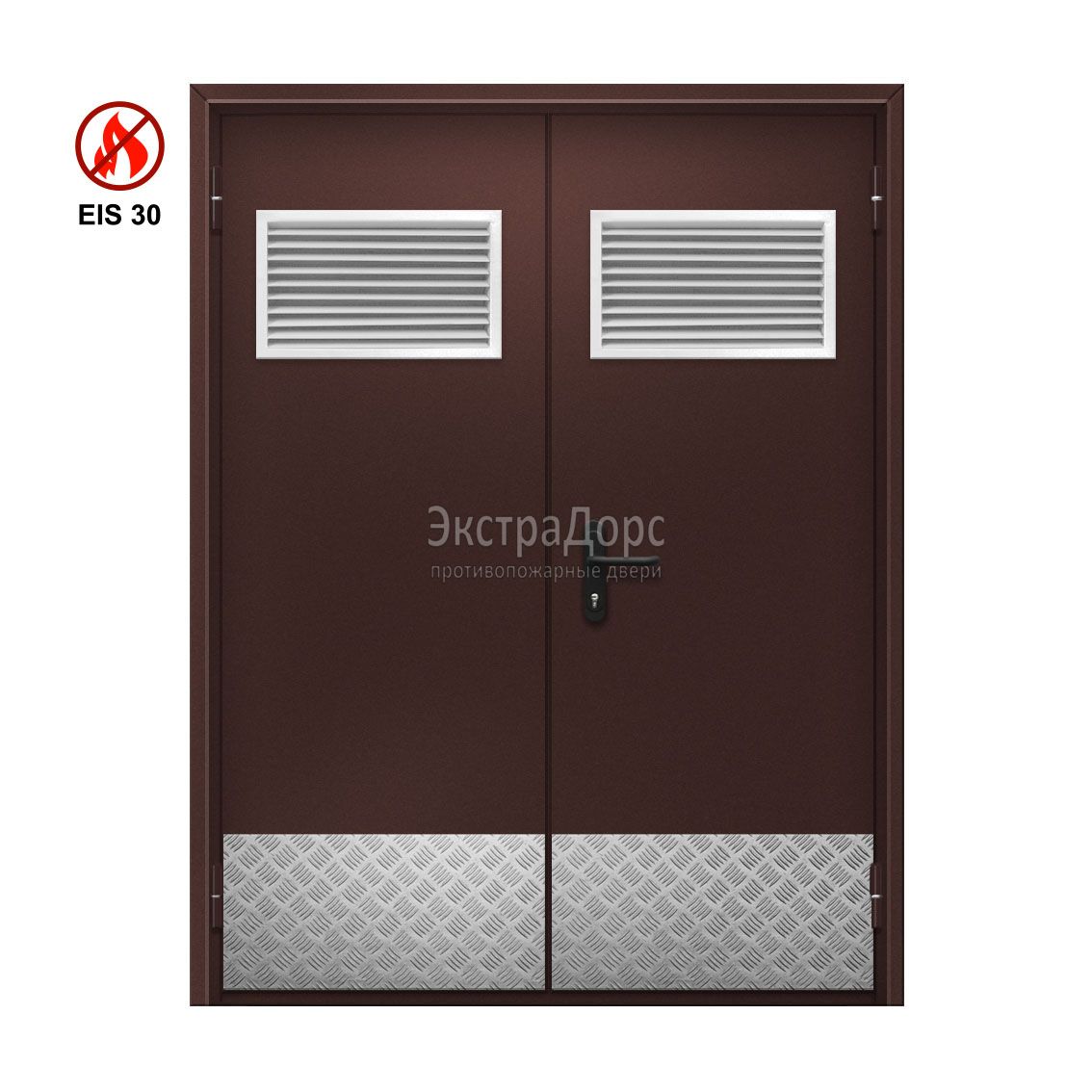 Двупольная противопожарная дверь EI 30 ДГ-02-EI30 ДП84 двупольная глухая с решеткой в Электростали