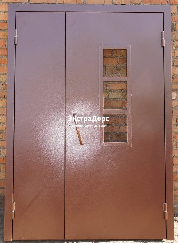 Противопожарная дверь двупольная анти-дым со стеклом, порошковая покраска в Электростали