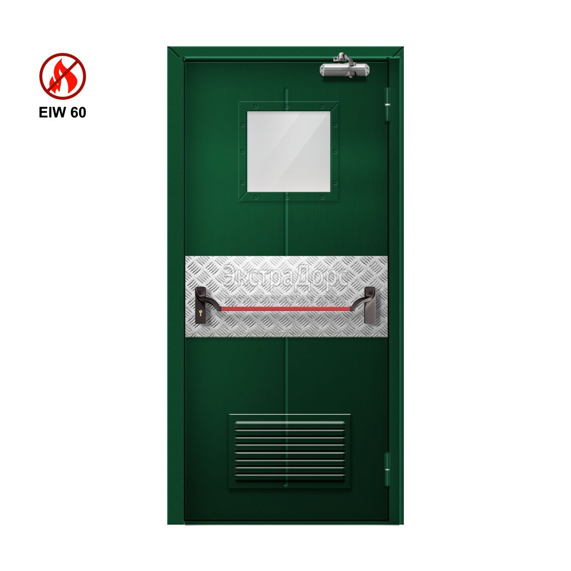 Противопожарная дверь с решёткой EIW 60 ДПМ-01-EIW-60 ДП59 однопольная остекленная с антипаникой в Электростали