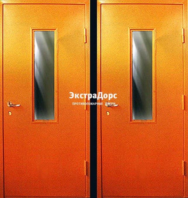 Противопожарная дверь EI 90 двупольная с остеклением c выпадающим порогом