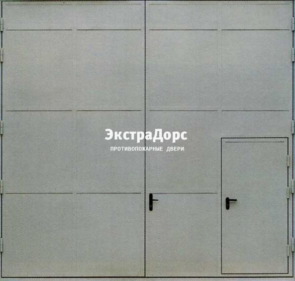 Противопожарные распашные серые ворота с калиткой в Электростали