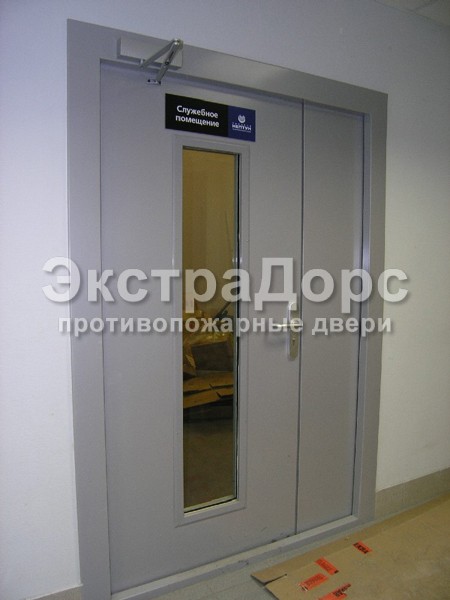 Двухстворчатая противопожарная дверь с прямоугольным стеклом в Электростали