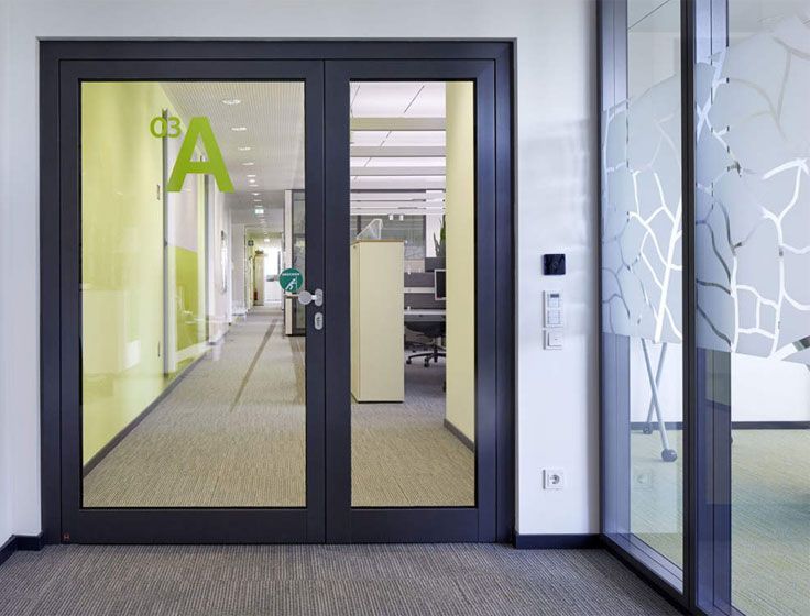 Противопожарная алюминиевая дверь со стеклом для офиса в Электростали